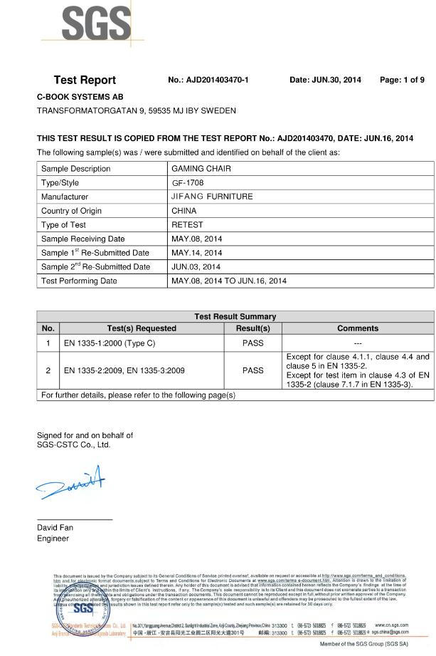 EN1335 թեստ SGS- Gfrun Ռոշի թեստ Intertek Rosh թեստ EN1335 Փորձարկման վկայական խաղային աթոռ Նախադիտում EN13335 Փայտե աթոռի փորձարկում Նախադիտում Հասնելու թեստ - Ջիֆանգ Նախադիտում Փորձարկման հաշվետվությունը թարմացված է Նախադիտում
