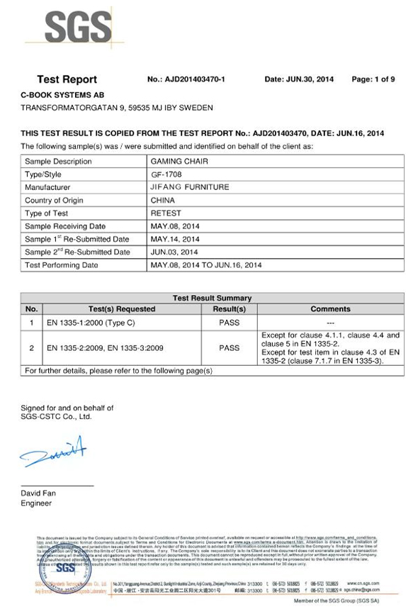 Vasega uliuli 3 gaslift ma TUV tusi faamaonia, lagolago le nofoa e tausisia le maketi Europa EN1335 suega ma US maketi BIFMA suega.